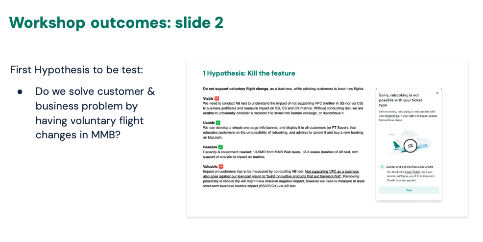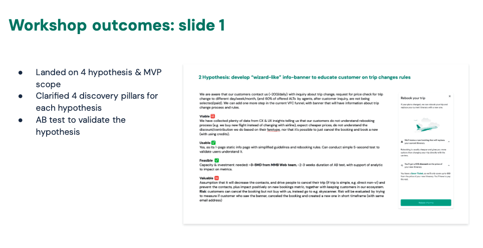 The workshop concluded with several hypotheses to validate through prototyping and testing.