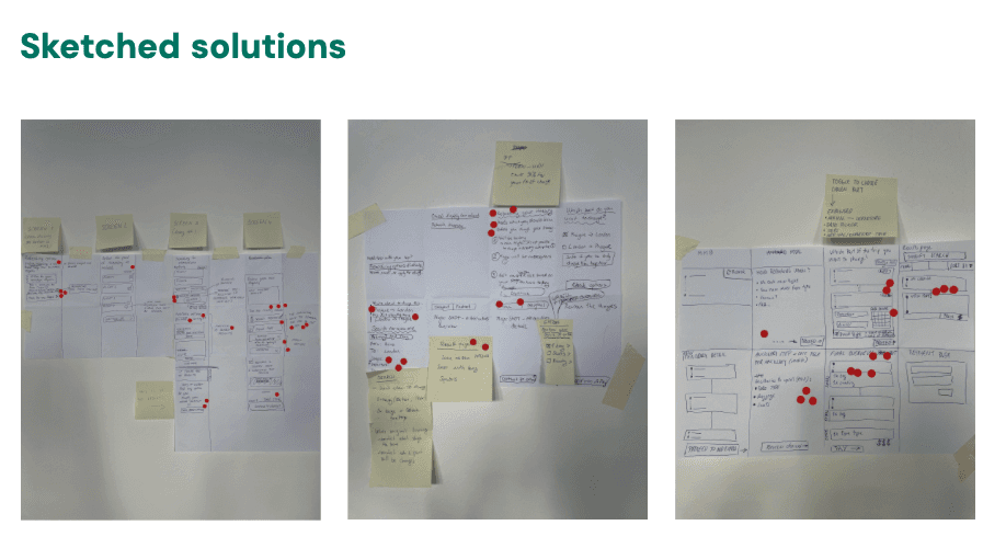 With the key problems and priorities agreed, we moved into structured brainstorming. Everyone sketched ideas individually first to avoid groupthink, then shared and discussed them together.