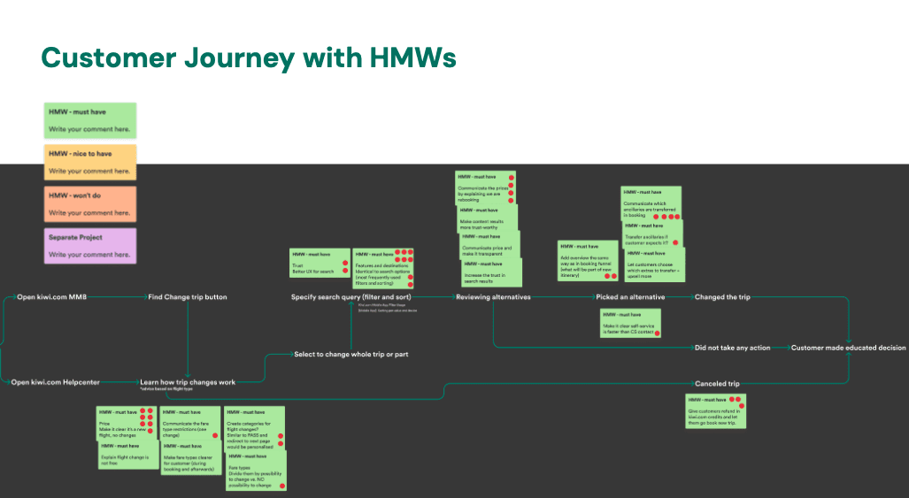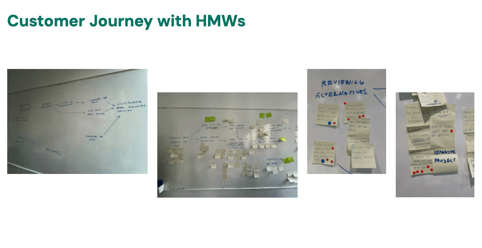 From those moments we created How-Might-We statements tied to specific Jobs-To-Be-Done, and voted on the most impactful opportunities to focus the team on a shared direction.